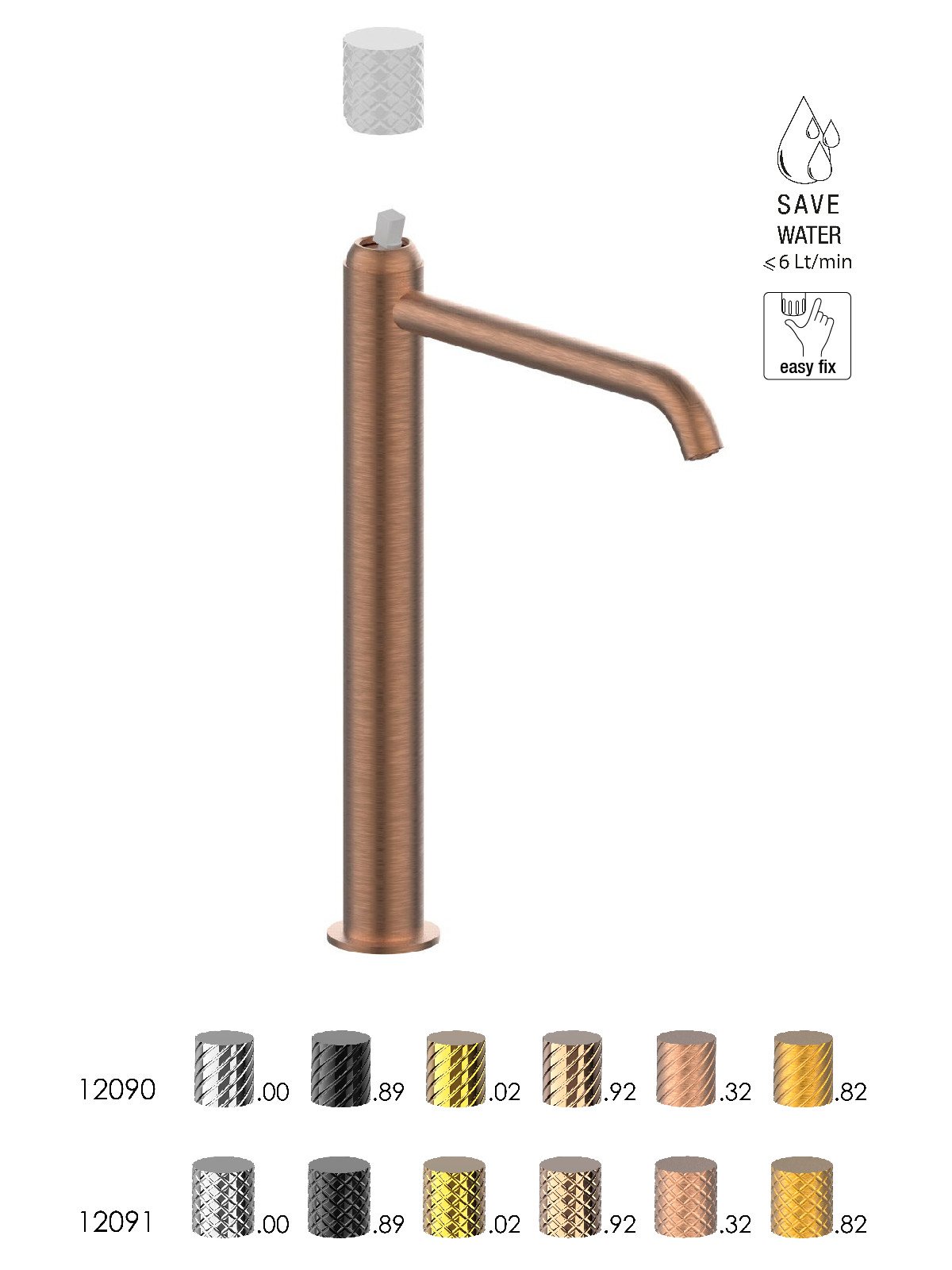 The taps are produced in Italy in dezincification resistant brass, in compliance with the most strict environmental regulations.
