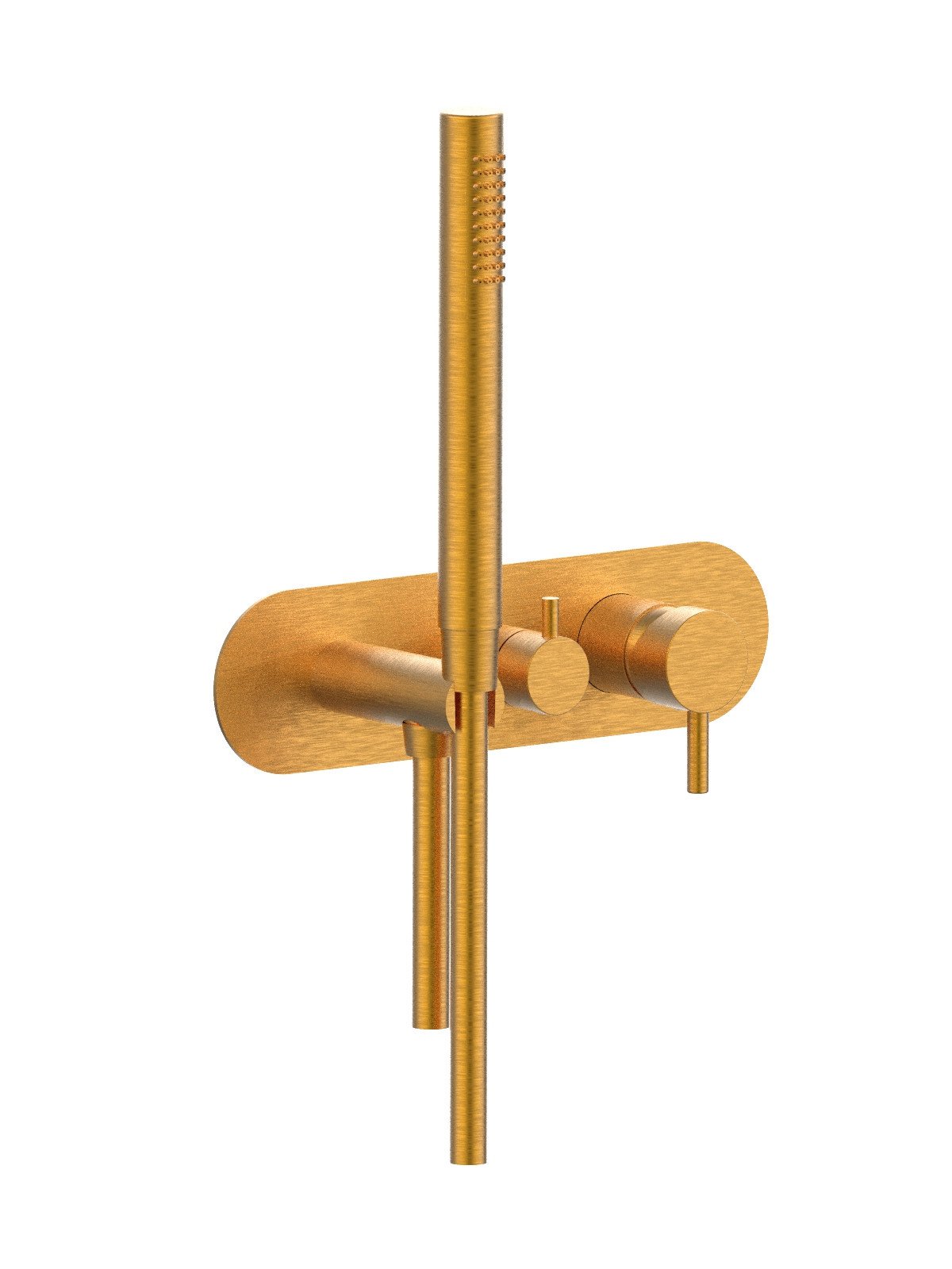 External visible components 3-way built-in mixer with ceramic discs diverter with handshower, brass plate - Pepe XL - Contemporary