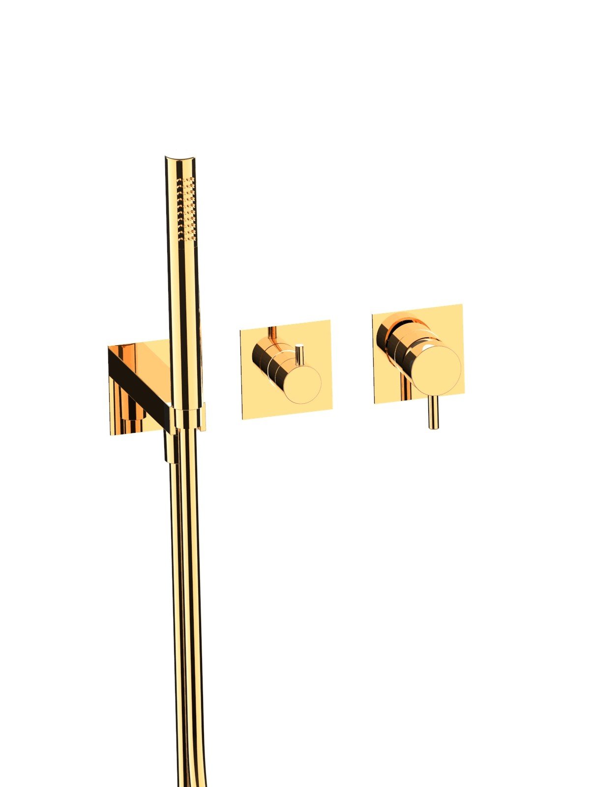 External set for built-in bath mixer with 3-way ceramic discs diverter and spout, brass plates - Pepe XL - Contemporary