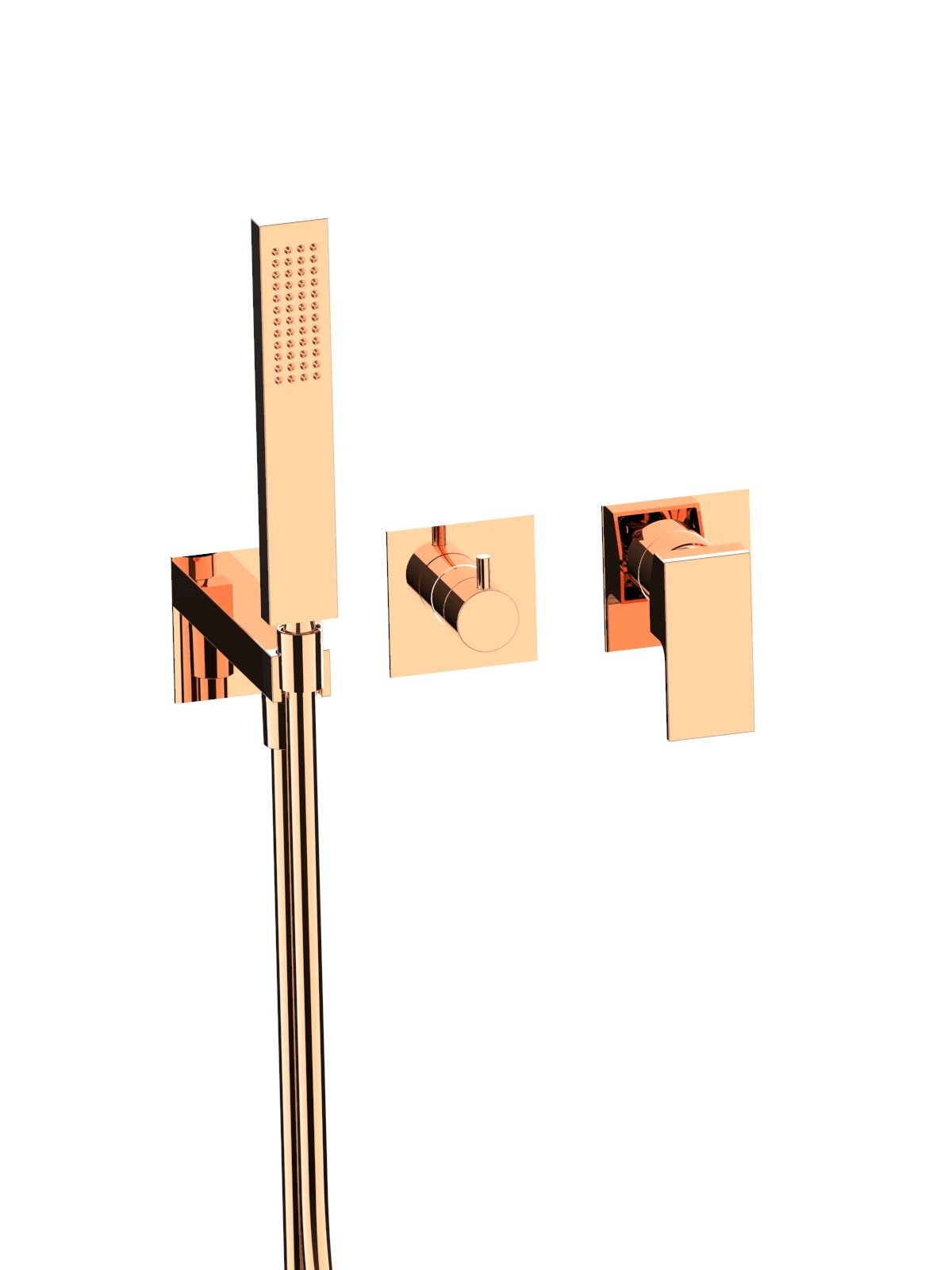 External visible components 3-way built-in mixer with ceramic discs diverter with handshower, brass plates - Vita Due - Contemporary