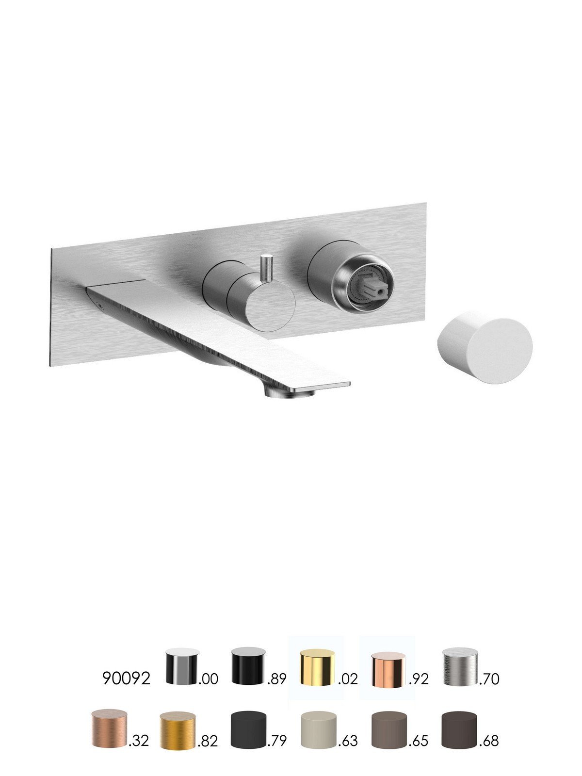 External set for built-in bath mixer with 3-way ceramic discs diverter and spout, brass plate - Narciso - Contemporary